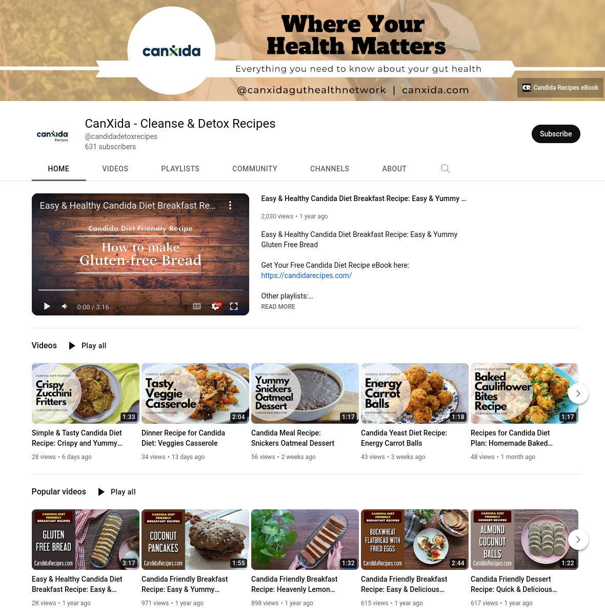 We also run the world's largest Candida and gut disorder related YouTube channel (called CanXida) we currently have 2,993 free educational videos (along with several ebooks) that teach you step-by step how to heal your gut from Candida, IBS & more.